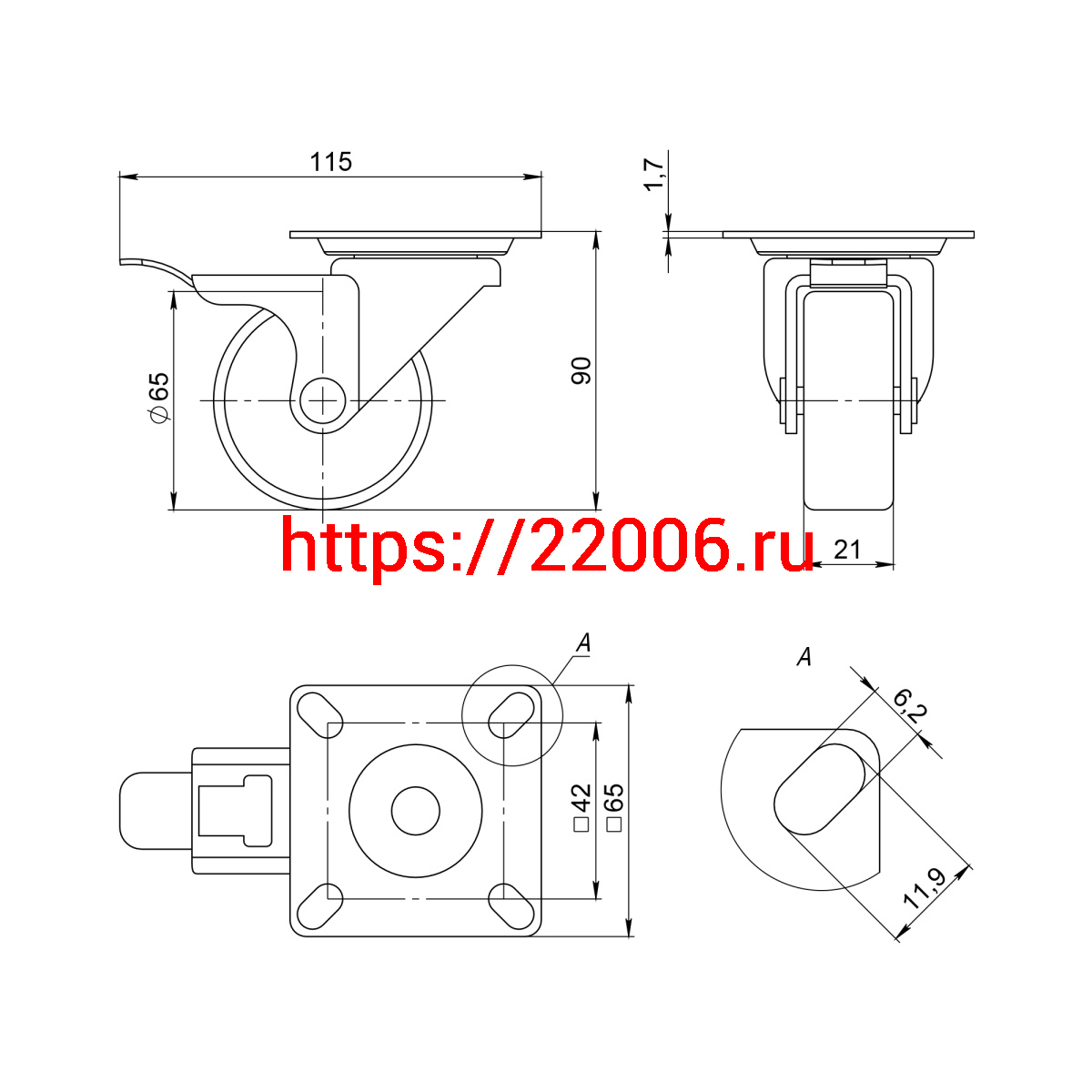 - Опора Ajax (Аякс) колесная со стопором и площадкой WL/B-60R/50 kg (brake) резина в Самаре недорого