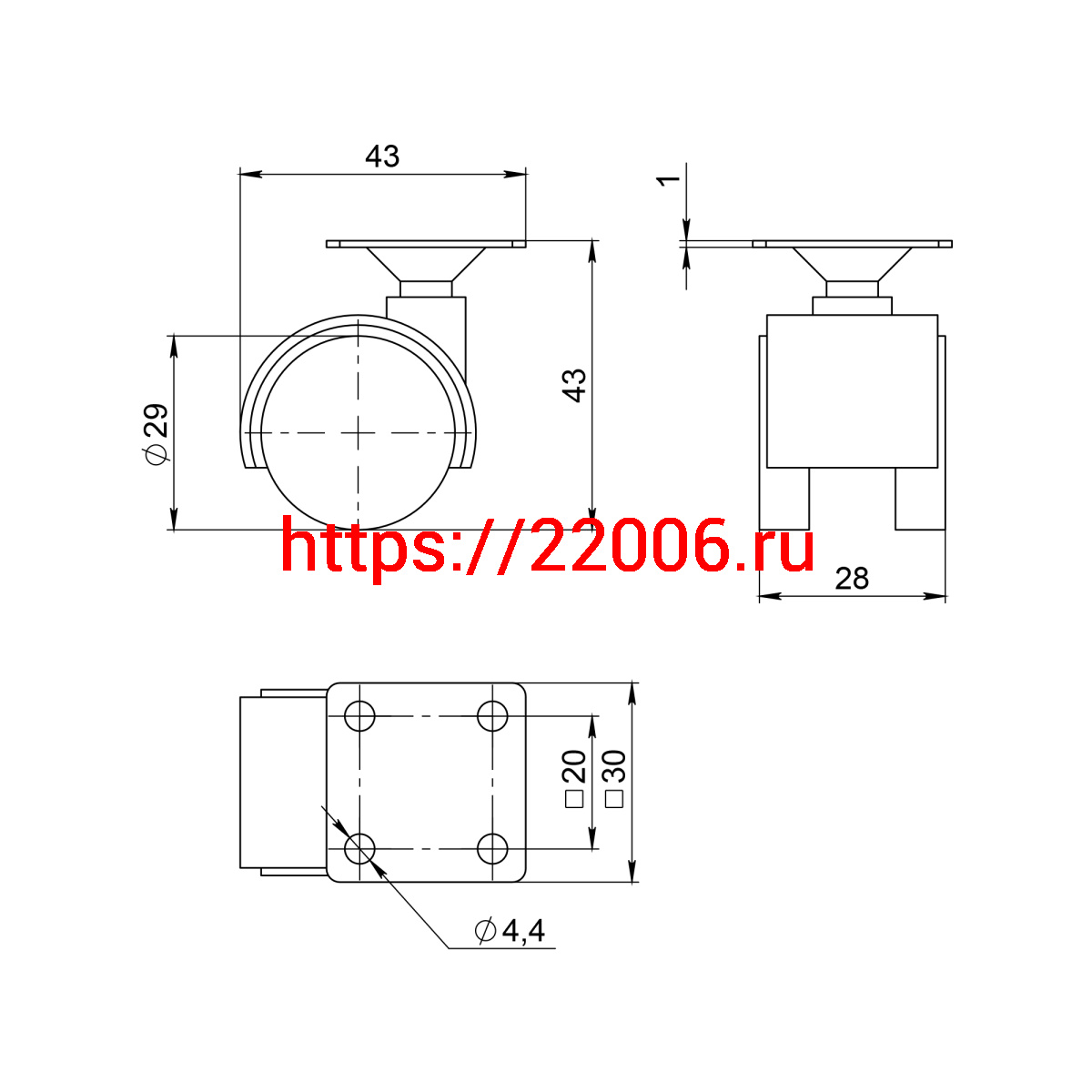 - Опора двухколесная Ajax (Аякс) с площадкой WL/B-30-2P/15kg пластик в Самаре недорого