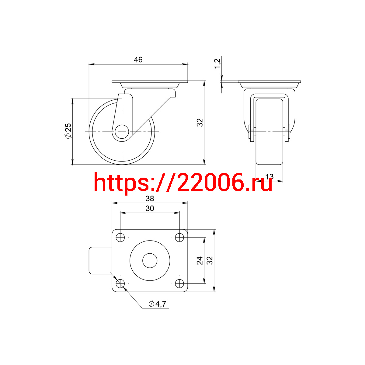 - Опора колесная Ajax (Аякс) с площадкой WL/B-25P/10kg пластик в Самаре недорого