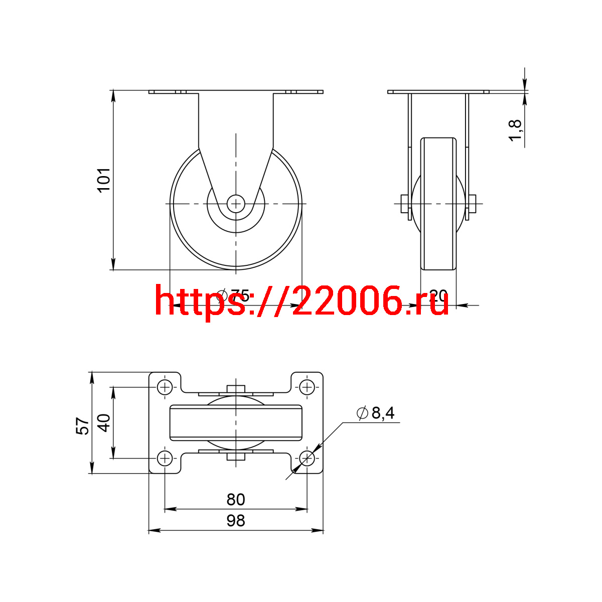 - Опора Ajax (Аякс) колесная прямоходная с площадкой WL/BN-75R/100 kg резина в Самаре недорого