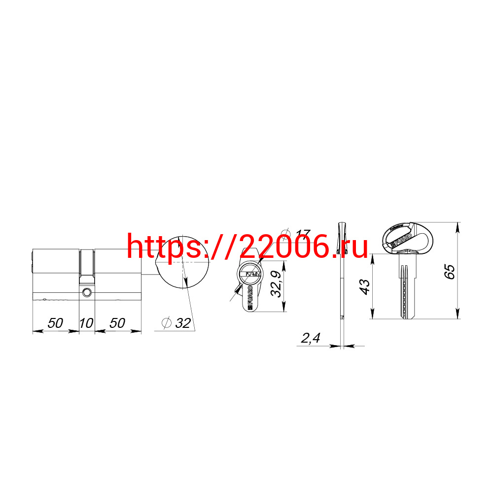 - Цилиндровый Fuaro (Фуаро) механизм (D-PRO502-8/110) D-PRO5002-8Knob110(50+10+50) CP хром 5+1Key с верт. перекод. в Самаре недорого