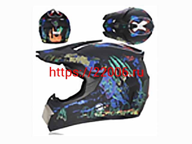 - Мотошлем VIRTUE MD-905 Кросс черный матовый с синим граффити (S) в Самаре недорого