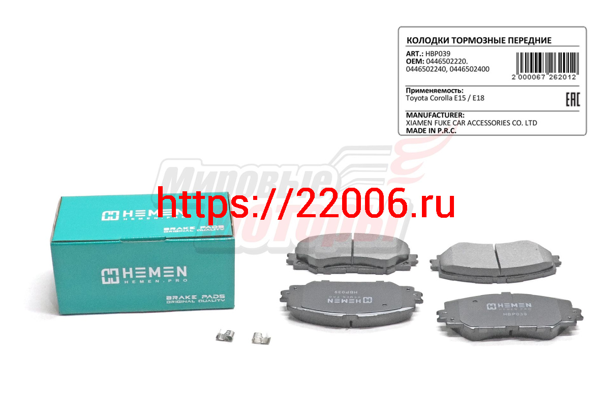 - Колодки торм. перед. Toyota Corolla E15, E18 (HBP039) в Самаре недорого