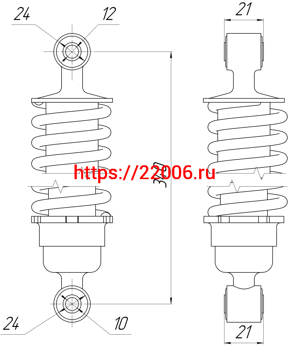 - Амортизатор зад. L-340, D1-24, d1-12, Н1-21, 2-24, d2-10, Н2-21 Alpha ANDES в Самаре недорого